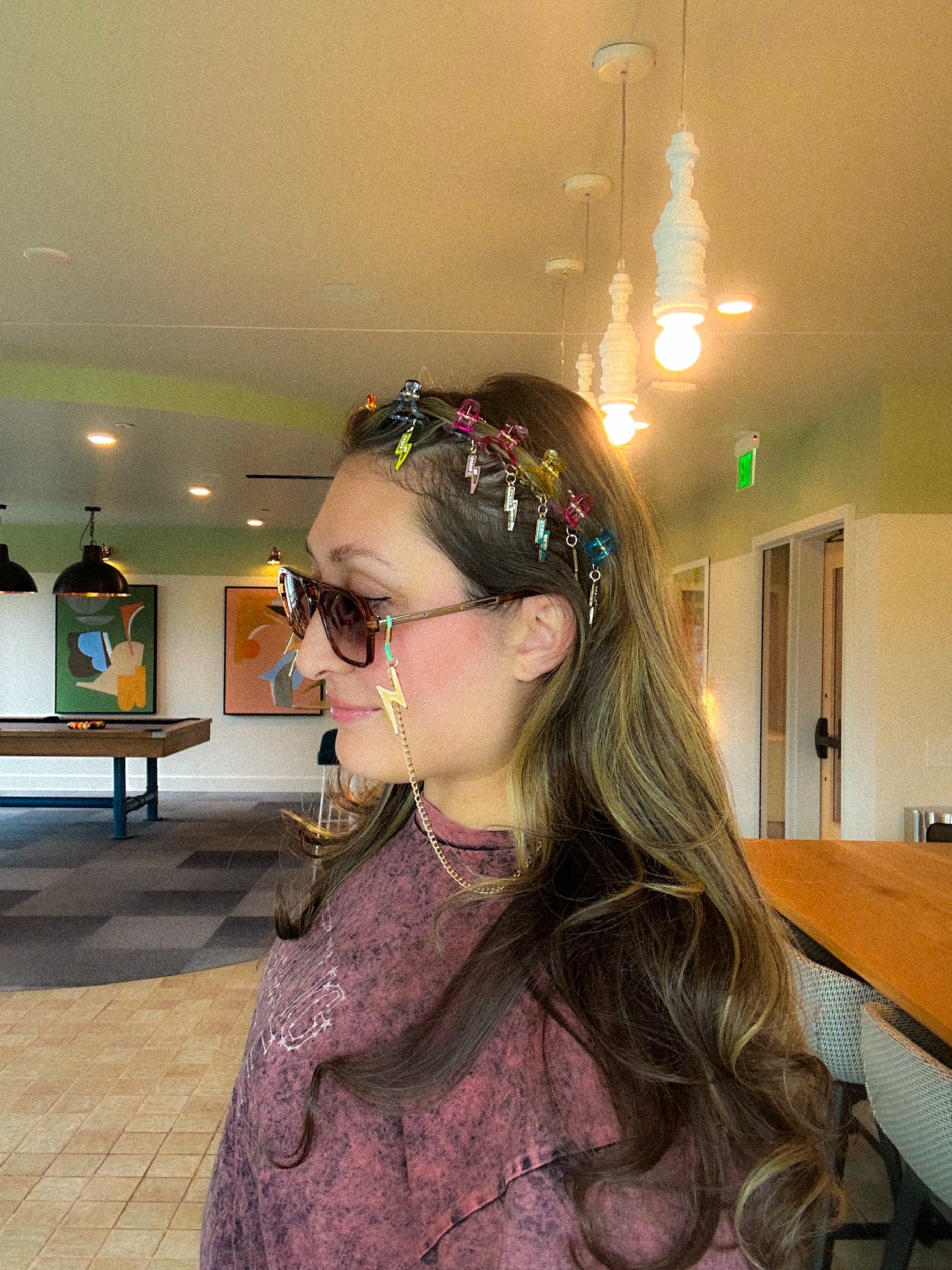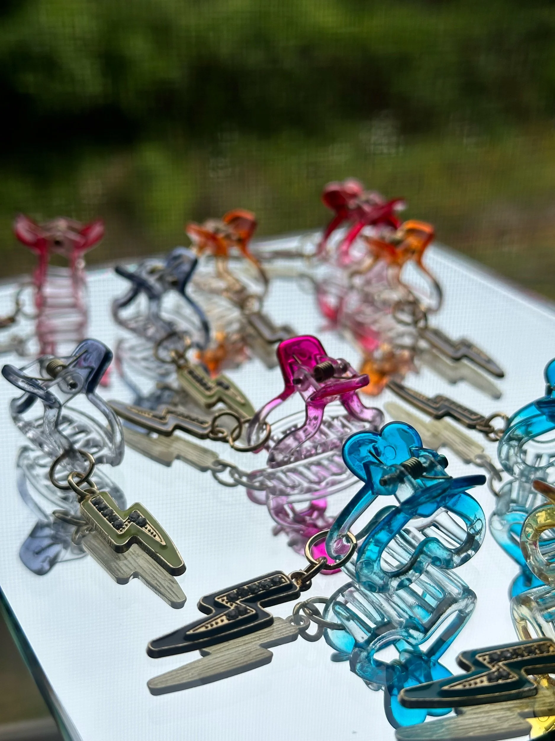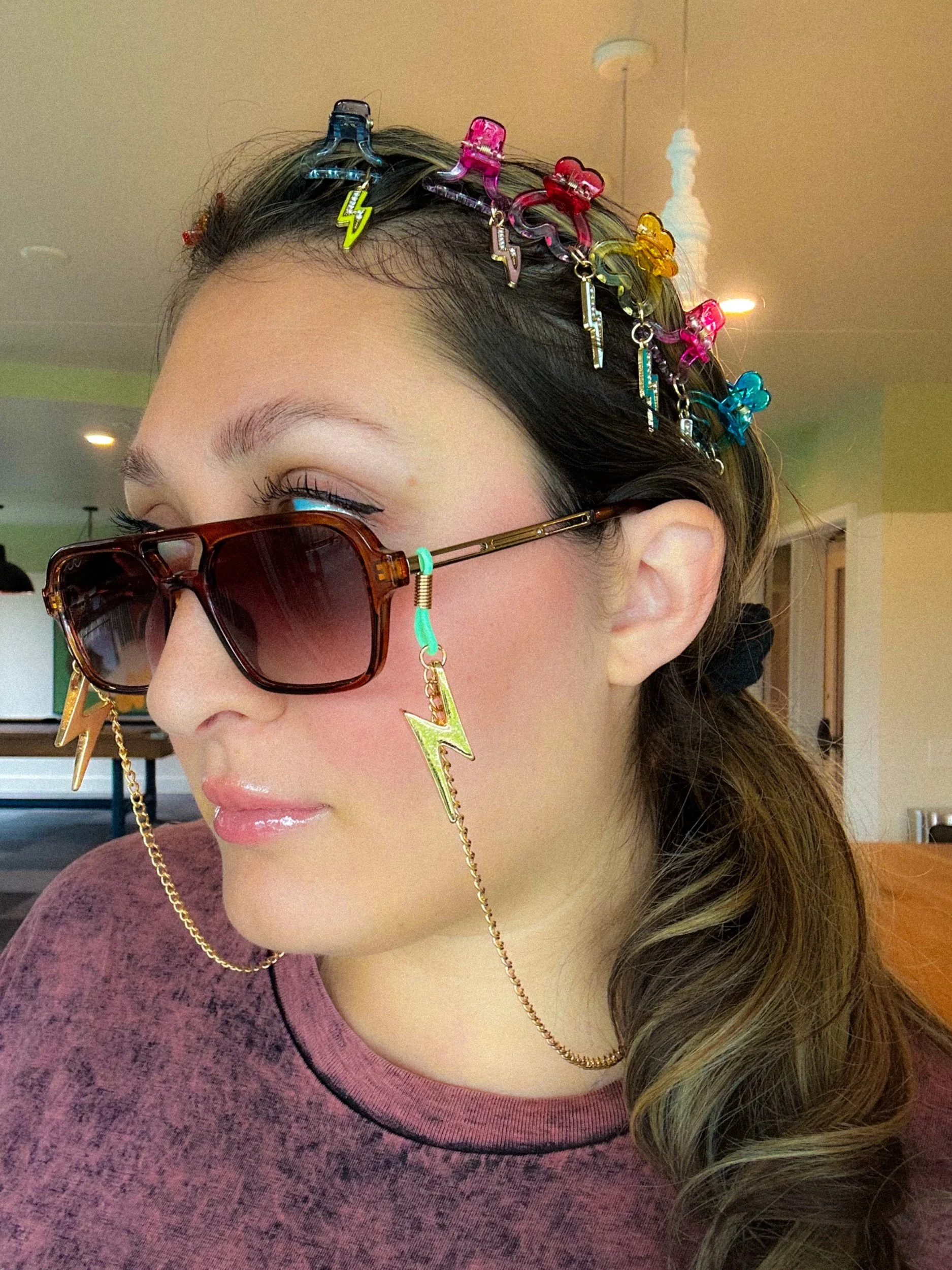 Set of 12 for a crown look or single clips available. Save $5 on a set of 12. Janessa wearing Dust Sunnies and Lightning Bolt Sunglasses Chain.