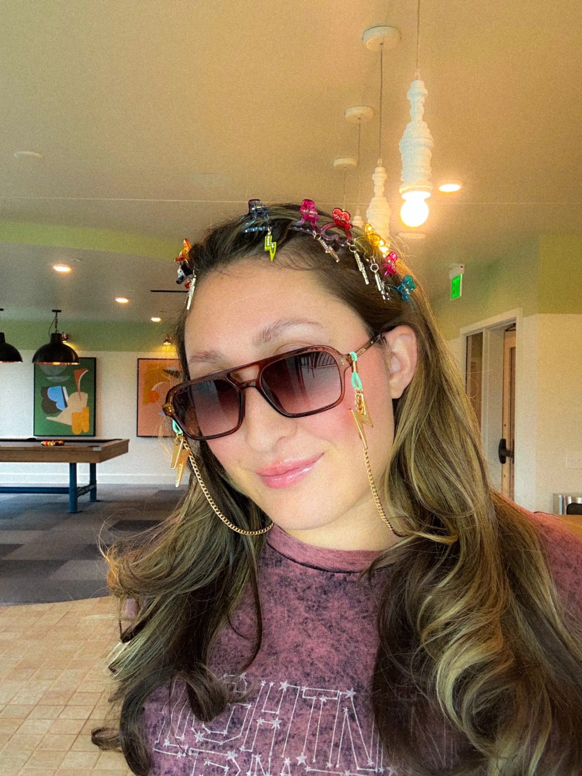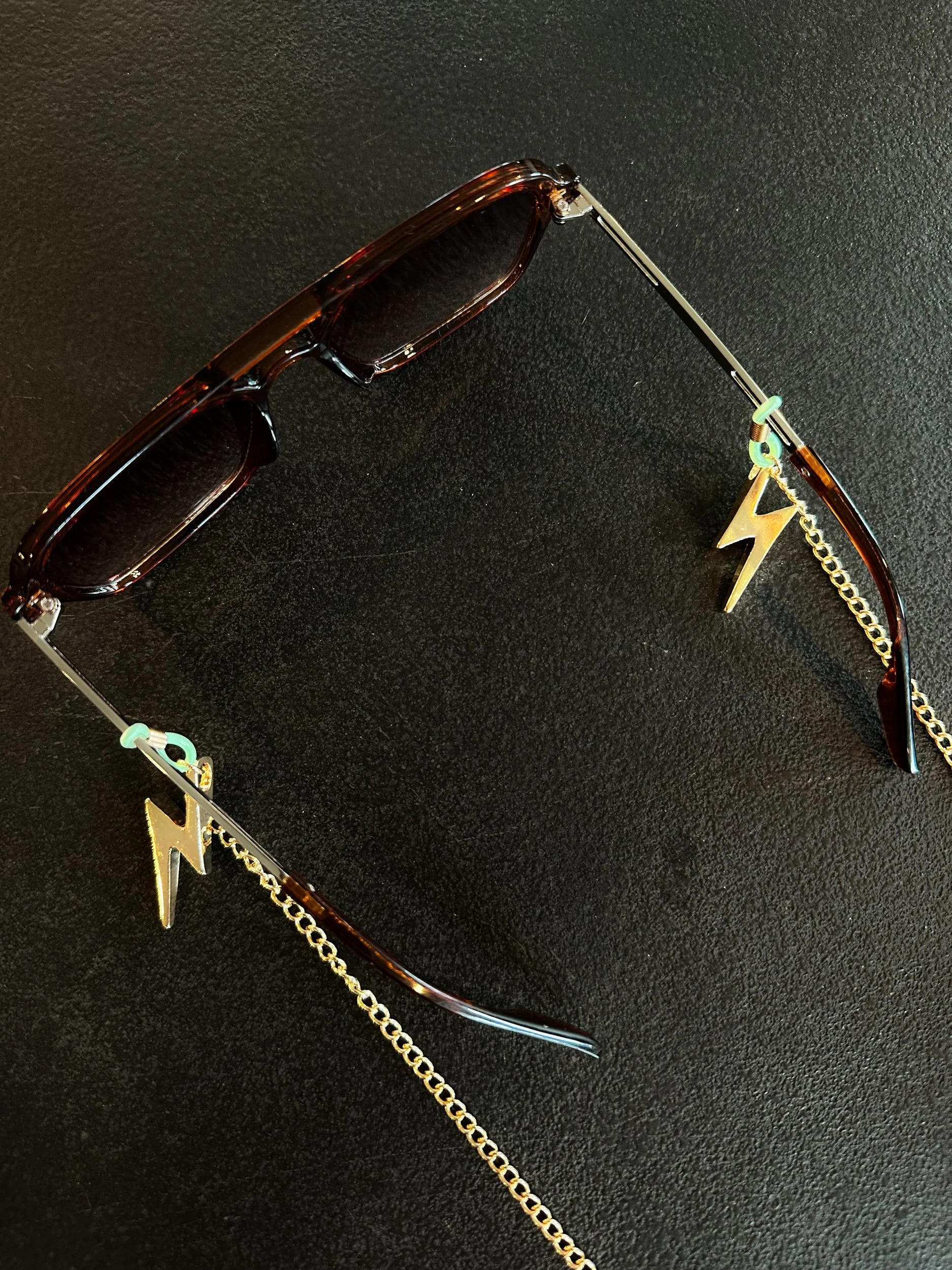 Shop › Lightning Bolt Sunglasses Chain Image 1 of 2 Image 2 of 2 Lightning Bolt Sunglasses Chain $30.00 Sunglasses chain only, sunglasses not included. Do not wash. Janessa wearing Lightning Bolt Hair Charms and Dust Sunnies. Silicone Grip Color: Black Clear Mint Green Purple White Add To Cart Added! Sunglasses chain only, sunglasses not included. Do not wash. Janessa wearing Lightning Bolt Hair Charms and Dust Sunnies.