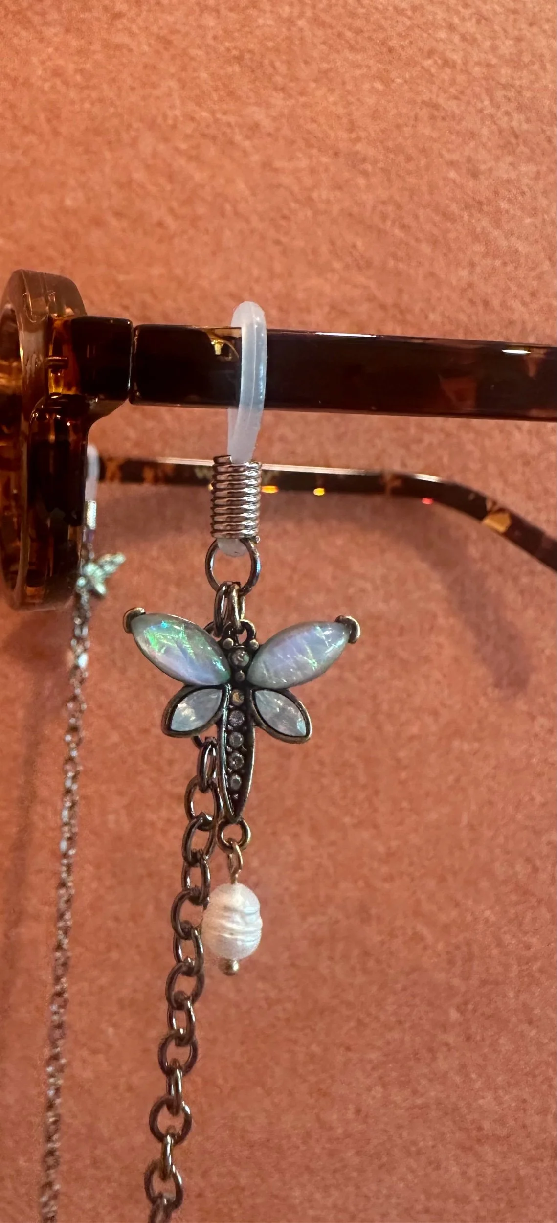 Shop › Dragonfly charm sunglasses chain Image 1 of 4 Image 2 of 4 Image 3 of 4 Image 4 of 4 Dragonfly charm sunglasses chain $30.00 Chain onlyNickel free Color: Gunmetal Add To Cart Added! Chain onlyNickel free Color: Gunmetal
