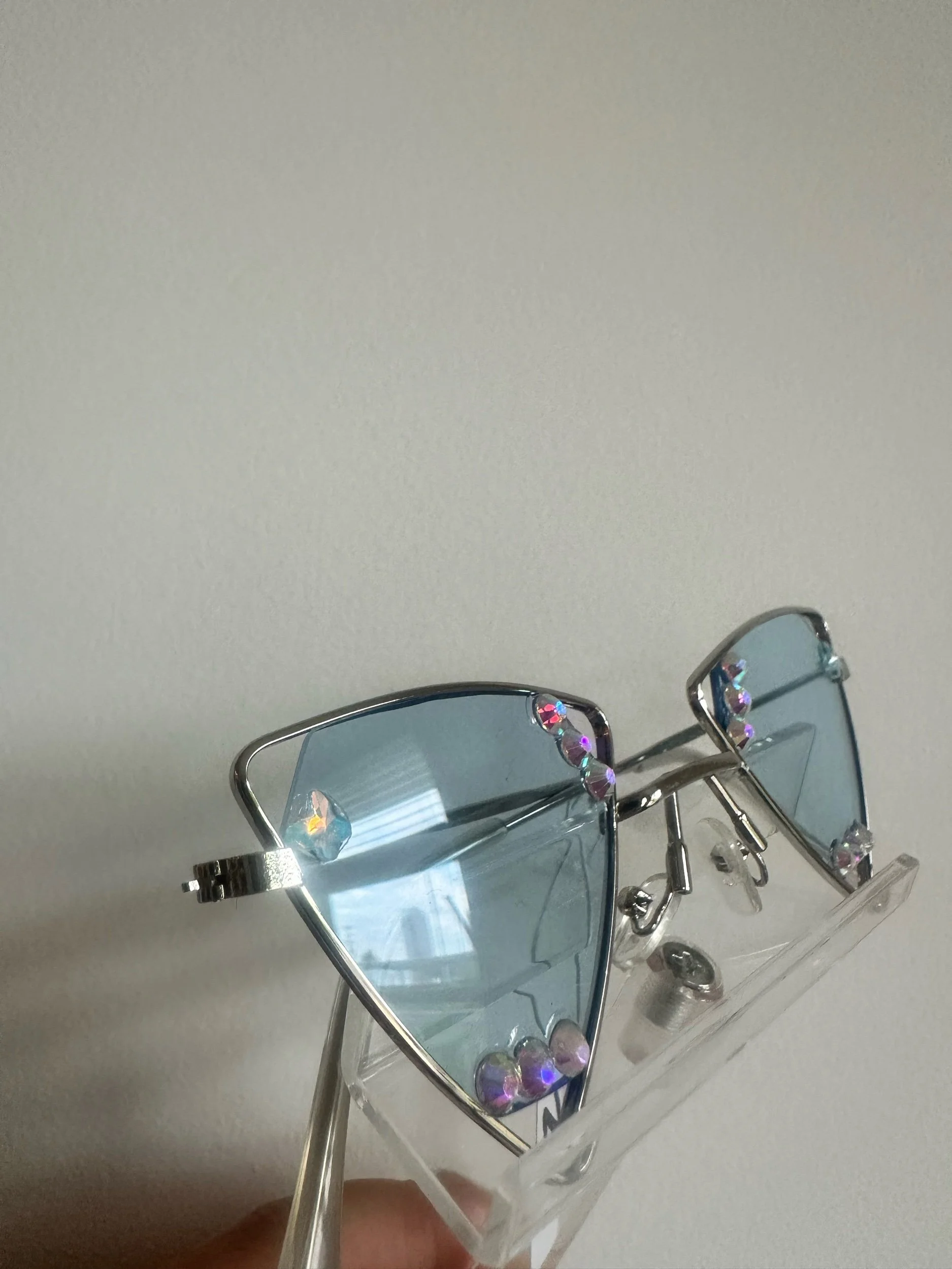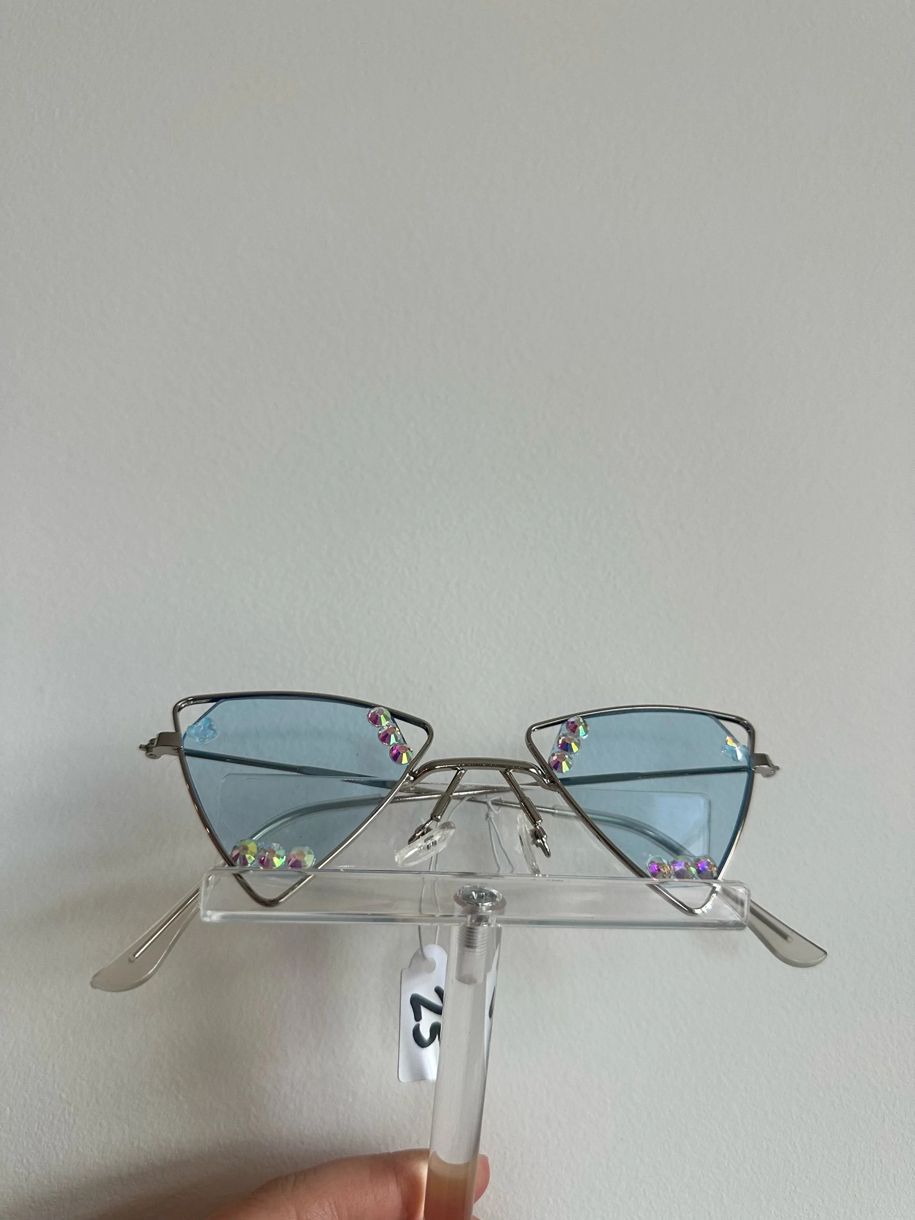 Shop › Blue Triangle Rhinestone Sunglasses Image 1 of 2 Image 2 of 2 Blue Triangle Rhinestone Sunglasses $25.00 Add To Cart Added!